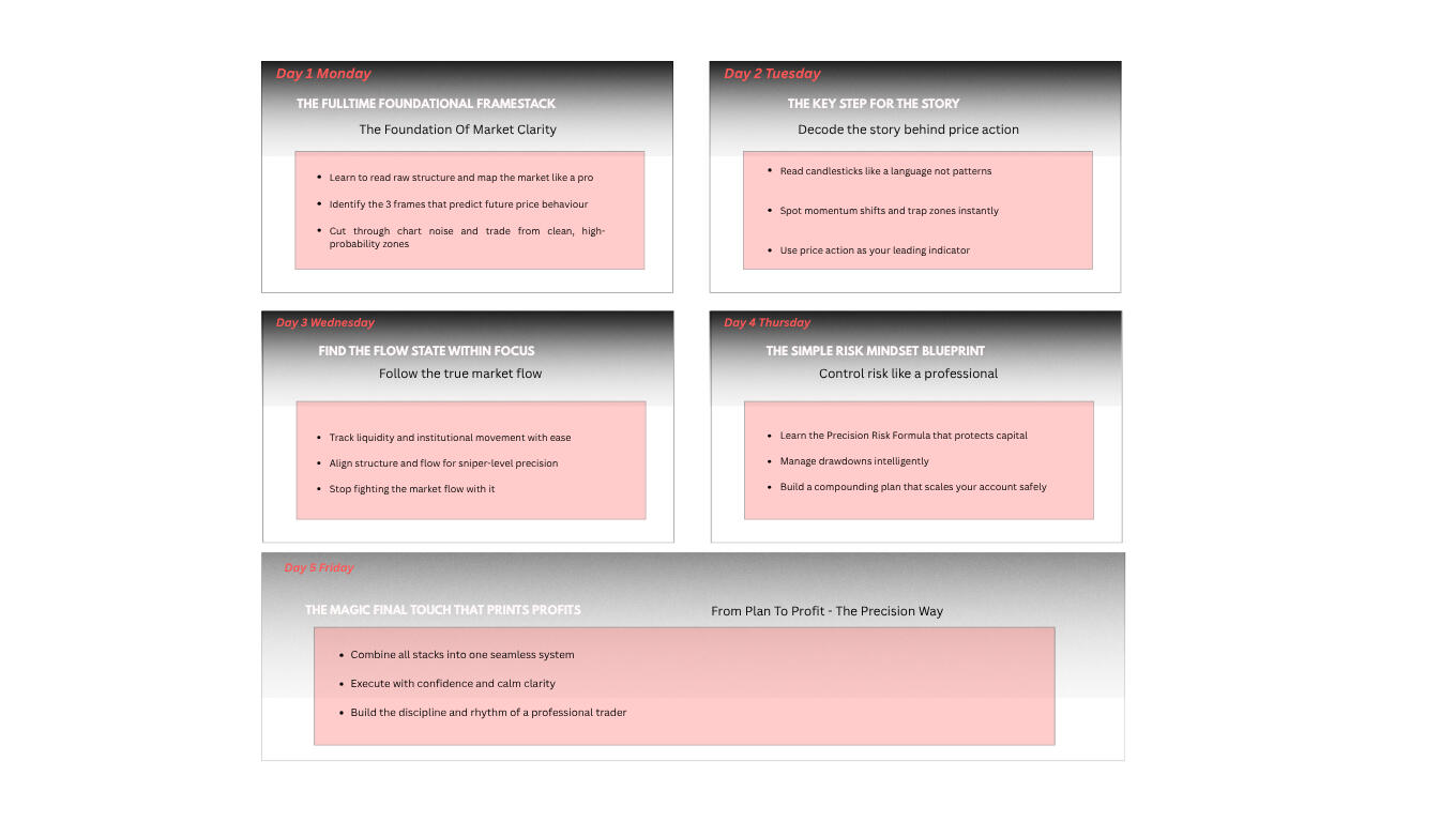 Finally learn how to think, see, and trade like a professional through a simple, repeatable 5-step process that works in any market condition, in just 5 days